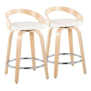 Grotto - Contemporary Fixed Height Counter Stool & Swivel With Round Footrest (Set of 2) - Natural / White