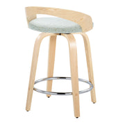 Grotto - Contemporary Fixed Height Counter Stool & Swivel With Round Footrest (Set of 2) - Natural / Light Green