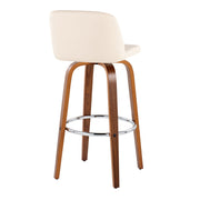 Toriano - Mid-Century Modern Fixed Height Barstool With Swivel And Round Footrest (Set of 2) - Walnut / Cream