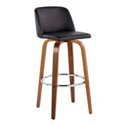 Toriano - Mid-Century Modern Fixed Height Barstool With Swivel With Round Footrest (Set of 2) - Walnut / Black
