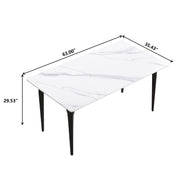 63" Modern Artificial Stone White Straight Edge Black Metal Leg Dining Table, 6 People - White / Black