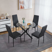 Dining Table With Cross Metal Leg And Tempered Glass, Modern Space Saving Kitchen Table For Living Room - Black