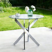 Dining Table With Cross Metal Leg And Tempered Glass, Modern Space Saving Kitchen Table For Living Room Legs - Chrome
