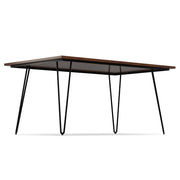 - Table base is made of powder-coated iron metal with trendy hairpin-style legs that bring an open, airy feel to a dining space.
