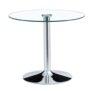 Modern Minimalist Round Dining Table With Glass Top And Metal Legs 35" Diameter - Silver / Transparent