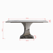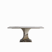 Modern Rectangular Dining Table With Stainless Steel Titanium Hourglass Base, Sintered Stone Top - Black White