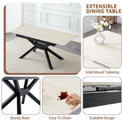 Rectangular Extendable Dining Table With Geometric X Frame, Kitchen Table For Dining Room - Beige