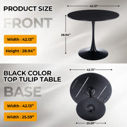 Tulip Special Dining Table, Black Marble Color Top, MDF Dining Table - Black