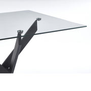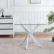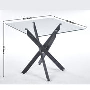 Dining Table With Cross Metal Leg And Tempered Glass, Modern Space Saving Kitchen Table For Living Room Legs, Square Table