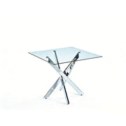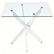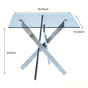 Dining Table With Cross Metal Leg And Tempered Glass, Modern Space Saving Kitchen Table For Living Room Legs, Square Table - Chrome
