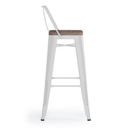 - Features curved back with vertical slat, solid wood seat and cross brace under seat, footrest provides extra stability. Protective rubber floor glides
