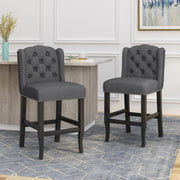 Vienna - Contemporary Fabric Tufted Wingback 27" Counter Stools, (Set of 2) - Charcoal / Dark Brown