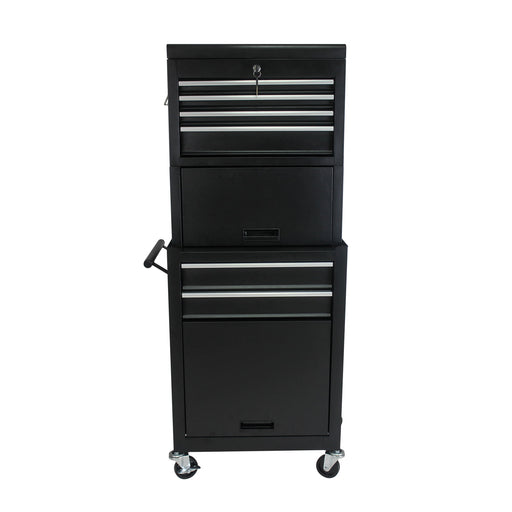 6 Drawer Lockable Tool Cabinet On Wheels, Steel Rolling Tool Chest With Detachable Toolbox