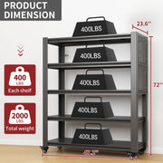 - Heavy-Duty Steel Construction: Crafted from thickened steel with reinforced ribs, supports 400lbs per shelf, totaling 2000lbs.