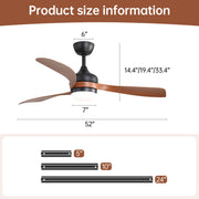 Ceiling Fan With 3 Blades, Remote Control, Reversible DC Motor, Noiseless Operation, 3 Downrods