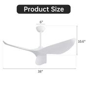 Ceiling Fan Without Light, DC Motor Remote Control Fan For Indoor / Outdoor Use - White