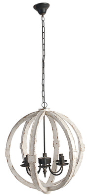 6 Light Wood Chandelier, Hanging Light Fixture With Adjustable Chain For Kitchen, Bulb Not Included - White