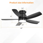 Flush Mount Ceiling Fan With 18W LED Light And Remote Control Blades - Black