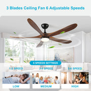 - Solid Wood Blades: Features 5 tung wood blades with a walnut finish, adding a modern rustic look and enhancing air circulation. The antique aged texture provides a sophisticated appearance.