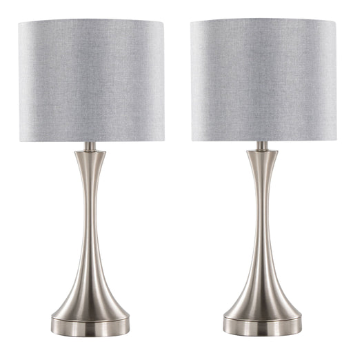 View full detailsStylish Design: This set includes two contemporary accent table lamps with a sleek nickel metal finish and simple ivory fabric cylinder drum shad...