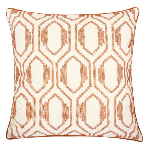 Burnt Orange Embroidery: Bold geometric pattern in rust tones adds visual interest to modern spaces Natural Cotton Base: Soft, breathable fabric p...