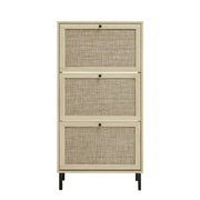 Modern Freestanding Rattan 3 Door Shoe Rack Storage Cabinet For Entryway - Natural Particle Board
