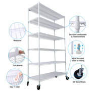 6 Tier 6000Lbs Capacity Nsf Metal Shelf Wire Shelving Unit, Heavy Duty Adjustable Storage Rack With Wheels & Shelf Liners For Commercial Grade Utility Steel Storage Rack - White