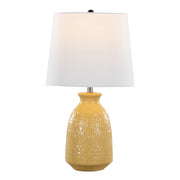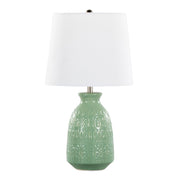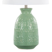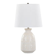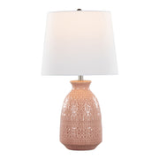 • Stylish Design: The Claudia Accent Lamp seamlessly combines modern and traditional elements with its vase-shaped ceramic base and beautiful textured pattern, making it a stylish addition to any room.