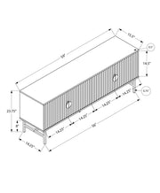 - Contemporary Design: This 60-inch TV stand features a modern and stylish design with a and laminate finish, complemented by ribbed doors and a sturdy metal frame. The metal knobs add an elegant touch to its overall appearance.