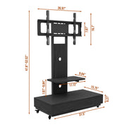 Mobile TV Cart With Push Pull Drawer For TVs And Metal Stand With Lockable Wheels - Black