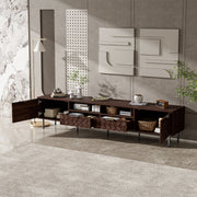 • Organized Entertainment Hub: Combines closed storage drawers, open shelves, and hidden compartments for efficient and stylish storage of media and accessories.