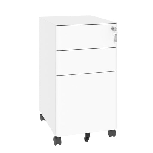 2-Drawer Mobile File Cabinet With Lock,On 360° Wheels, Holds A4/Letter/Legal Files - White