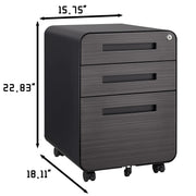 3 Drawer Mobile File Cabinet Under Desk Office, Simple Style Versatile Storage Cabinet For Legal / Letter / A4 Files, 5 Wheel Design Anti-Tilting Cold Rolled Steel Waterproof Moisture-Proof
