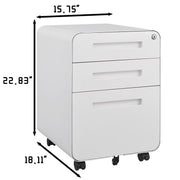 3 Drawer Mobile File Cabinet Under Desk Office, Simple Style Versatile Storage Cabinet For Legal / Letter / A4 Files, 5 Wheel Design Anti-Tilting Cold Rolled Steel Waterproof Moisture-Proof - White