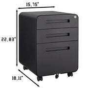 3 Drawer Mobile File Cabinet Under Desk Office, Simple Style Versatile Storage Cabinet For Legal / Letter / A4 Files, 5 Wheel Design Anti-Tilting Cold Rolled Steel Waterproof Moisture-Proof - Black