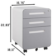3 Drawer Mobile File Cabinet Under Desk Office, Simple Style Versatile Storage Cabinet For Legal / Letter / A4 Files, 5 Wheel Design Anti-Tilting Cold Rolled Steel Waterproof Moisture-Proof - White / Gray