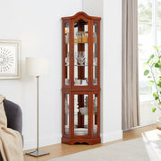 Corner Curio Cabinet With Lights, Adjustable Tempered Glass Shelves, Mirrored Back, Display Cabinet (E26 Light Bulb Not Included) - Walnut