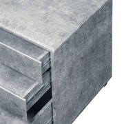 - Design & Construction: The Jurgen Faux Concrete & Silver Finish File Cabinet features a wooden case-frame with a faux concrete veneer finish. It is constructed using materials like T18mm MDF, T15mm PB, and T12mm PB, ensuring durability and a sophisticated appearance.