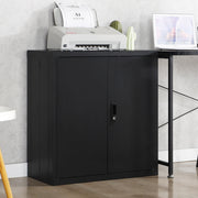 Storage Cabinet With Locking Doors And Adjustable Shelf, Folding Filing Cabinet For Home Office - Black