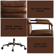 Harith - Retro Top Grain Leather Office Chair - Brown
