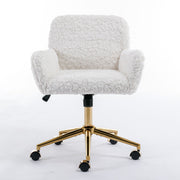 Office Chair, Artificial Rabbit Hair Home Office Chair With Golden Metal Base, Adjustable Desk Chair Swivel Office Chair, Vanity Chair - Beige