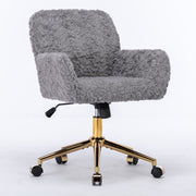 Office Chair, Artificial Rabbit Hair Home Office Chair With Golden Metal Base, Adjustable Desk Chair Swivel Office Chair, Vanity Chair - Gray