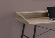 • Sturdy Construction: Supported by a metal base in a matching finish, this desk includes tapered, angled metal legs and X-shaped support bars at the back for enhanced stability.
