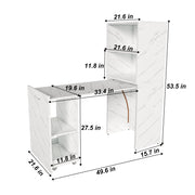 Stretchable Office Desk With Storage Shelves And Mobile Wheels, Foldable Design For Small Apartments - White Marble