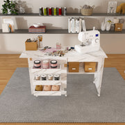 4 In 1 Folding Sewing Table With Lockable Wheels, Multi Functional Craft Station - White