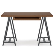 - Features a wide, extra thick table top surface, integrated keyboard tray and sturdy charcoal powder coated metal sawhorse supports
