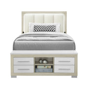 Emilia - 5 Piece King Bedroom Set With Panel Headboard And Storage - Natural / White