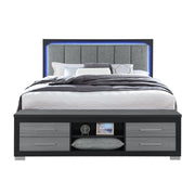 Emilia - 5 Piece Queen Bedroom Set With Storage And LED Lighting - Black / Gray