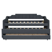 Twin Size Upholstered Daybed With Trundle And 3 Drawers - Gray