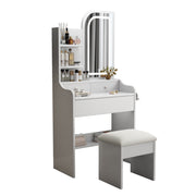 Fashion Vanity Desk With Mirror And Lights For Makeup, Hair Dryer Holder And Chair, Adjustable Lighting - White